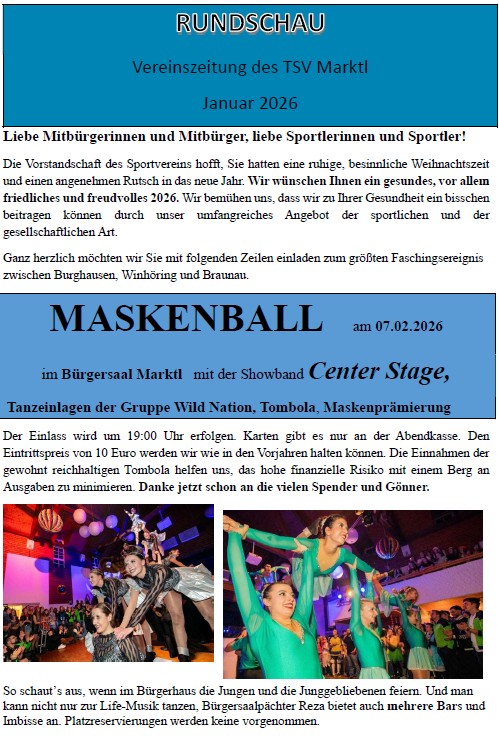 Eine neue Ausgabe der TSV-Rundschau ist verfügbar. Die Papierausgabe wird in den nächsten Tagen an alle Haushalte in Marktl verteilt.